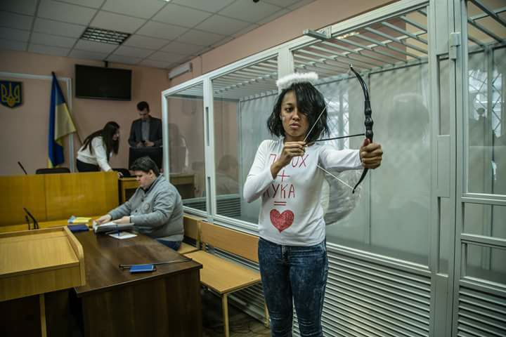 Яценко опублікував фото своєї підзахисної і зазначив, що засідання відклали у зв’язку з неявкою прокурора і адвоката. «Напис на майці: “Порох + Лука = ❤», – додав адвокат.