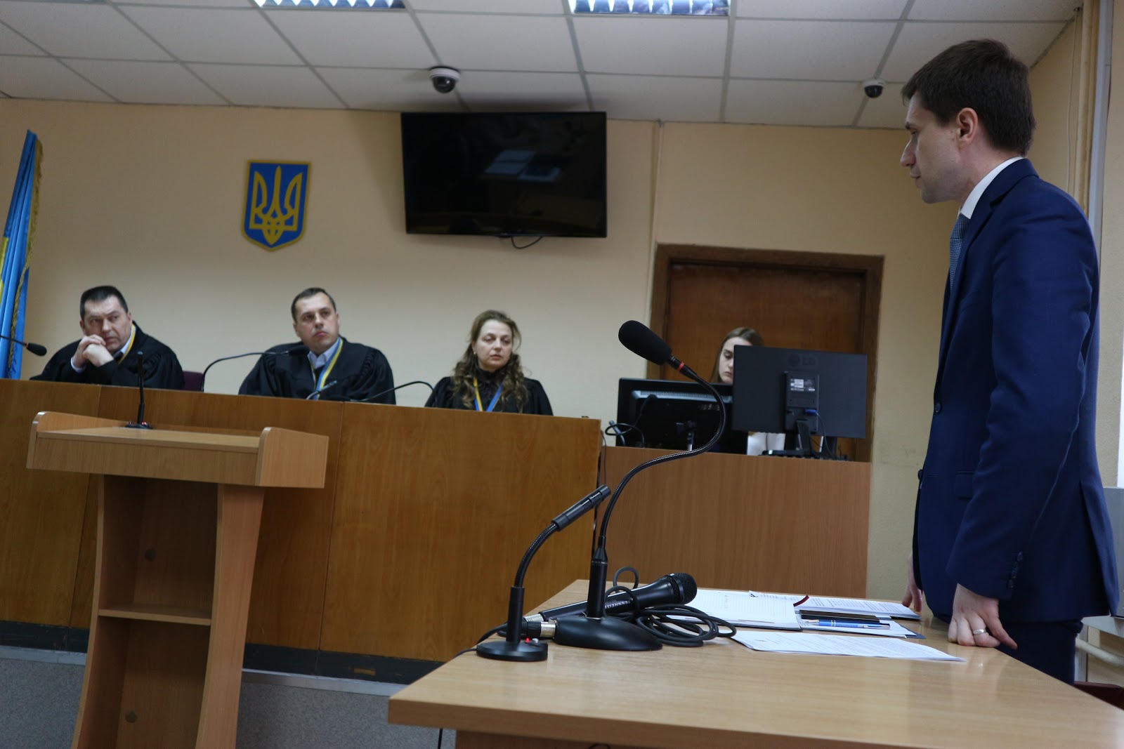 «Місце вчинення злочину визначається за місцем події… Обвинувальний акт містить перелік майна, що набуто у власність і, як вважає прокурор, не підтверджено джерелами. Ми почали вивчати це майно. Останнє, на що вказує прокурор, – це набір для малювання вартістю 1800 гривень… Ми вважаємо, що прокурор має усунути недоліки… Якщо, Ваша честь, звернете увагу на перелік… Ну яке це незаконне збагачення?! Там перед цим – комунальні платежі… Сторона обвинувачення повинна була відокремити те майно, яке підтверджується і те, яке не підтверджується…Можна було б від цього відштовхнутися і зрозуміти, коли яке майно набуте», – сказав адвокат Ярослав Білявський.