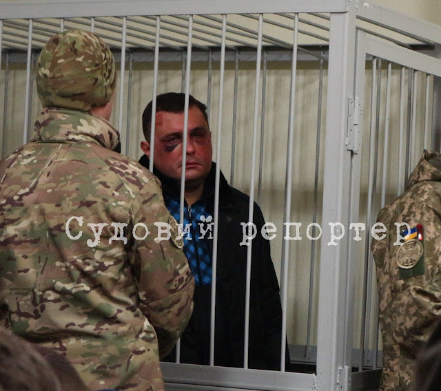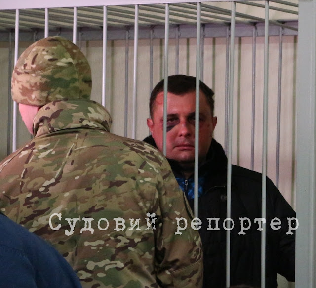У залі суду Шепелева тримають у «клітці» в оточенні спецназу. У нього побите обличчя. Деякі журналісти стверджують, що також зламана щелепа. Прокурор Кравченко сказав, що має інформацію, ніби СБУ зареєструвала кримінальне провадження за заявою Шепелева про побиття.