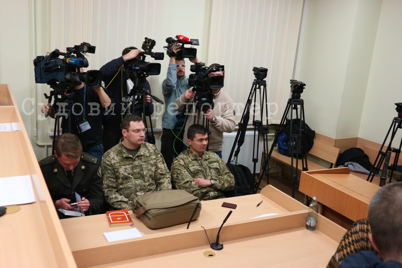 Перед тим як журналістів попросили вийти із залу Шепелев, чекаючи суддю з нарадчої, спілкувався з пресою протягом 3 хвилин.