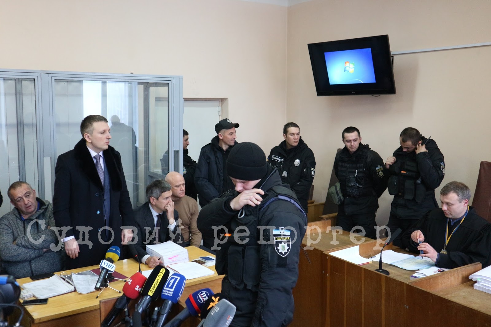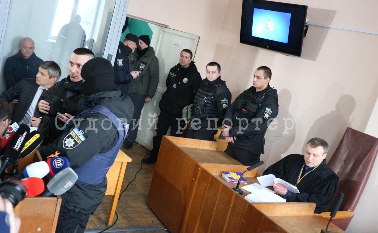 Зранку у будівлю суду прийшло багато чоловіків спортивної статури. Декотрі ховали обличчя під масками. За їх словами, їм цікаво було поспостерігати за процесом.
