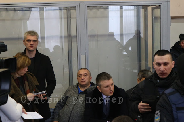 Як відомо, Труханов був напередодні затриманий в аерпорту “Бориспіль” до сужу прибув під конвоєм. На початку засідання він також перебував у скляному боксі, але суд дозволив йому сісти поряд із захисником.