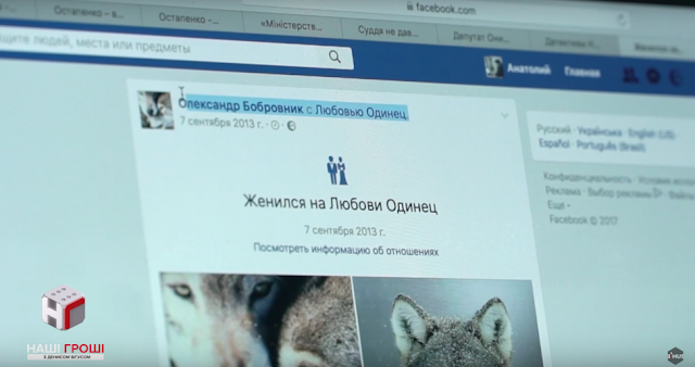 Раніше суддя вів Facebook і повідомив там, що 7 вересня 2013 одружився із Любов’ю Одинець. Крім того, журналісти помітили, що Бобровник носить обручку, хоча офіційно холостяк.