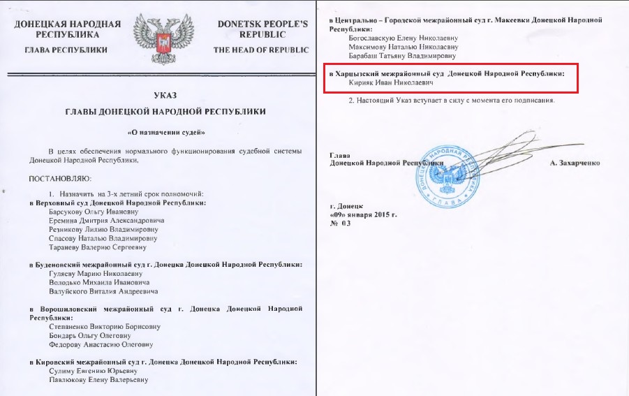 Указ про призначення на посаду судді “ДНР”